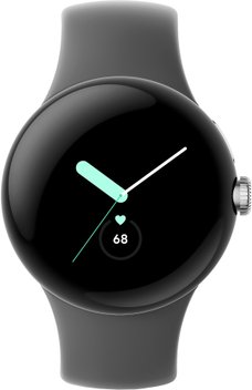 Умные часы Google Pixel Watch (глянцевый серебристый/угольный, спортивный силиконовый ремешок)